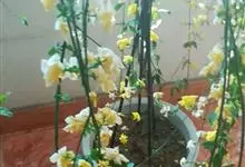 迎春花,木犀科素馨属的多年生木本植物,小枝细长直立或者呈拱形下垂;叶片呈卵形或椭圆形;花单生于叶腋处,苞片呈披针形或椭圆形,花冠为金黄色,花瓣通常为倒卵形或椭圆形;花期在6月。…全部>>