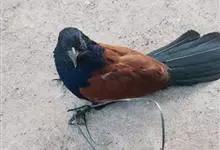 褐翅鸦鹃,是鹃形目鸦鹃科鸦鹃属的鸟类。褐翅鸦鹃的身体为黑色;头颈和胸带蓝紫色金属光泽并具黑亮的羽干纹,下胸至腹部泛金属绿光泽;两翼和肩部为棕栗色,外侧飞羽具暗色羽端,尾羽闪铜绿色光泽;虹膜赤红色,…全部>>