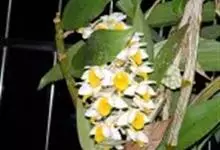 束花石斛是兰科石斛属植物。茎粗厚,肉质,下垂或弯垂,圆柱形,不分枝,具多节。叶二列,互生于整个茎上,纸质,长圆状披针形。伞状花序近无花序柄,每2-6花为一束,侧生于具叶的茎上部;花黄色,…全部>>