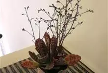 伽蓝菜是景天科伽蓝菜属植物。多年生草本,高20-100厘米。叶对生,中部叶羽状深裂,全长8-15厘米,裂片线形或线状披针形。聚伞花序排列圆锥状,长10-30厘米;苞片线形。花期3月。…全部>>