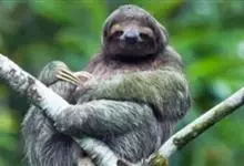 树懒,是披毛目哺乳动物的通称,共有2科2属6种。树懒头又圆又小,耳朵也很小,而且隐没在毛中;上颌有5齿,下颌有4齿,细小而没有釉质;尾巴很短,只有3~4厘米;毛被蓬松长厚,毛色灰褐。因其树懒形状略似猴,…全部>>