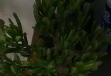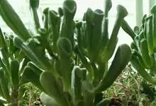 筒叶花月,是景天科青锁龙属的多年生草本植物。植株多分株,灌木状,茎较粗壮,圆柱形,表皮灰褐色;叶片肉质,互生,呈圆筒状,簇生于茎或分枝顶端,叶端呈斜截形,截面为椭圆形;花呈星状,淡白色;花期秋季。…全部>>