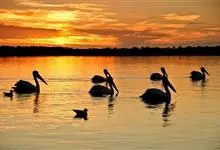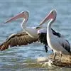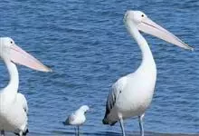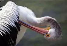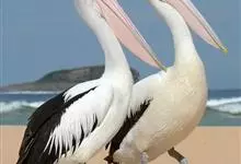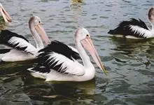 澳大利亚鹈鹕是一种大型涉禽,体重达13千克。生活于沿海及河川、湖泊等处。飞行力强而悠逸,常群飞群栖,极善于游泳,但不会潜水。游泳时张口捕鱼,将捕得的鱼兜入喉囊内。有时结群,排成长线,…全部>>