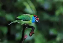 蓝喉拟啄木鸟,是须鴷科、拟啄木鸟属的鸟类。蓝喉拟啄木鸟为小型鸟类,体长20-23厘米。前额至头顶鲜红色,其上有一宽阔的黑色横带,将此红色分为前后二块;头侧、颏、喉蓝色,下喉两侧各具一红色点斑。…全部>>