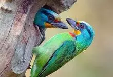 黑眉拟啄木鸟,为须䴕科、拟啄木鸟属的小型鸟类,体长20-25厘米,外形和金喉拟啄木鸟非常相似,但具粗著的黑色眉纹,头侧和耳覆羽以及下喉蓝色而不为银灰色,前颈两侧各有一块鲜红色斑。全部>>