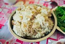 排骨饭是砂锅饭里的代表作,也是“先煮饭后放料”煮法的代表。这种煮法最适合排骨类红肉有荤有素的搭配,而且最好多烧出些汁儿。因为七八成熟的米饭米粒之间空隙大,…全部>>