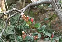 厚叶石斑木 Makino)是蔷薇科,石斑木属常绿灌木或小乔木,枝粗壮极叉开,枝和叶在幼时有褐色柔毛,后脱落。叶片厚革质,长椭圆形、卵形或倒卵形,圆锥花序顶生,萼筒倒圆锥状,萼片三角形至窄卵形;花瓣白色,…全部>>