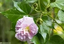 木芙蓉,锦葵科木槿属落叶灌木或小乔木。小枝上有细绒毛;叶片为卵状心形,托叶为披针形,常早落;花单生,花萼为钟形,花冠初为白色或淡红色,后逐渐变为深红色;果实为扁球形,有淡黄色的毛附着。花期8到10月。…全部>>