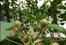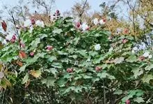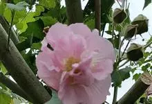木芙蓉,锦葵科木槿属落叶灌木或小乔木。小枝上有细绒毛;叶片为卵状心形,托叶为披针形,常早落;花单生,花萼为钟形,花冠初为白色或淡红色,后逐渐变为深红色;果实为扁球形,有淡黄色的毛附着。花期8到10月。…全部>>