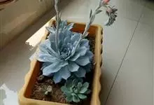 蓝石莲是景天科、拟石莲花属的多肉植物。茎部粗壮,成熟植株茎部木质化。叶片莲座型密集排列,株径不会很大,叶片相对较薄,常年绿色,表面布有白色粉末,中部凹陷,呈倒水滴状。叶尖较尖,叶缘光滑无褶皱,…全部>>