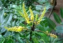 十大功劳 Fedde),小檗科十大功劳属常绿灌木植物。叶子较大且较多,呈椭圆形,绿色,表面光滑无毛,叶柄较长;花朵较小,呈多边形,黄色,花瓣对称分布,表面有绒毛;果实呈圆形,褐色,…全部>>