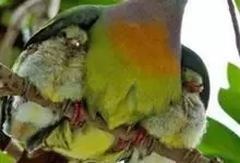 橙胸绿鸠体长24-29厘米,体重135-200克。是中等体型的绿鸠。黑色的翼上具醒目的黄色纵纹和翼缘。脸前部绿色,颈背及上背灰色。雄鸟下体黄绿,上胸淡紫,下胸橘黄;雌鸟胸部绿色。尾灰色,…全部>>