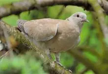 珠颈斑鸠,别名花斑鸠、珍珠鸠、花脖斑鸠、鸪鹪,是鸠鸽科副斑鸠属鸟类。体型中等,体长27~34cm,体重120~205g,雌鸟和雄鸟羽色相似,但雌鸟不如雄鸟羽色亮泽。珠颈斑鸠前额至头顶羽色稍淡,…全部>>