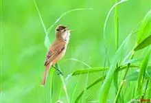 大苇莺:属小型鸟类,雌雄两性羽色相似。眉纹淡棕黄色;眼褐色;翅褐色具淡棕色的边缘;尾羽亦褐色,但较翅羽的褐色稍浅。顶部是棕色,上体呈黄褐色,腹面淡棕黄色,两胁较深,腹部中央转为乳白色。…全部>>