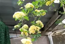 黄木香花 Rehd.)是蔷薇科、蔷薇属植物,为木香花的变型品种,攀缘小灌木,高可达6米。小叶3-5枚,稀7枚,小叶片椭圆形或长圆状披针形,先端急尖或稍钝,基部近圆形或宽楔形,边缘有紧贴细锯齿。花小型,…全部>>