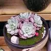 紫珍珠是景天科石莲花属的多年生肉质草本植物。植株中小型;叶片肉质,匙形,呈莲座状紧密排列;叶片粉紫色,叶缘呈粉白色,光照充足时颜色亮丽,不足时叶色会呈现深绿色或灰绿色,叶面光滑,被轻微白粉,…全部>>