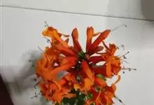 厚萼凌霄 Seem.)是紫葳科凌霄属植物,藤本,具气生根,长达10米。小叶9-11枚,椭圆形至卵状椭圆形,顶端尾状渐尖,基部楔形,边缘具齿,至少沿中肋被短柔毛。花萼钟状,长约2厘米,外向微卷,…全部>>