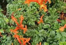硬骨凌霄 Spach)是紫葳科硬骨凌霄属的多年生常绿木质藤本植物。茎多分枝;枝带绿褐色;叶对生,奇数羽状复叶,边缘有锯齿;总状或圆锥花序顶生,花冠漏斗状,橙红色或橙黄色;蒴果长线形,略扁;花期几乎全年,…全部>>