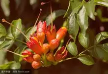 厚萼凌霄 Seem.)是紫葳科凌霄属植物,藤本,具气生根,长达10米。小叶9-11枚,椭圆形至卵状椭圆形,顶端尾状渐尖,基部楔形,边缘具齿,至少沿中肋被短柔毛。花萼钟状,长约2厘米,外向微卷,…全部>>