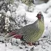 血雉雉科血雉属鸟类,别名血鸡、松花鸡,血雉的雄鸟大覆羽、尾下覆羽、尾上覆羽、脚、头侧、腊膜为红色,故称血雉。其别名甚多,各地皆异。在甘肃,因其胸侧和翅上覆羽沾绿,被称为“绿鸡”;因其羽毛形似柳叶,…全部>>