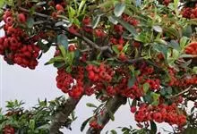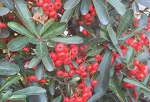 火棘 H. L. Li)是蔷薇科火棘属常绿灌木,老枝呈暗褐色;叶片呈倒卵形,边缘有钝锯齿,齿尖向内弯,两面皆无毛;叶柄短,无毛或嫩时有柔毛;花序是复伞房状,花瓣呈白色近圆形;果球近圆形,…全部>>