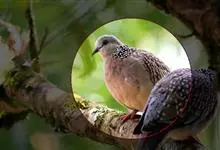 珠颈斑鸠,别名花斑鸠、珍珠鸠、花脖斑鸠、鸪鹪,是鸠鸽科副斑鸠属鸟类。体型中等,体长27~34cm,体重120~205g,雌鸟和雄鸟羽色相似,但雌鸟不如雄鸟羽色亮泽。珠颈斑鸠前额至头顶羽色稍淡,…全部>>