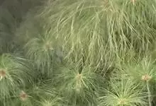 纸莎草是莎草科、莎草属的植物,具有粗壮的根状茎,高达2-3米,茎秆簇生,粗壮,直立,钝三棱形。叶退化呈鞘状,茎秆顶端着生总苞片,呈伞状簇生,总苞片叶状,披针形,顶生花序伞梗极多,细长下垂。瘦果灰褐色,…全部>>