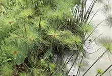 纸莎草是莎草科、莎草属的植物,具有粗壮的根状茎,高达2-3米,茎秆簇生,粗壮,直立,钝三棱形。叶退化呈鞘状,茎秆顶端着生总苞片,呈伞状簇生,总苞片叶状,披针形,顶生花序伞梗极多,细长下垂。瘦果灰褐色,…全部>>