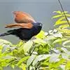 褐翅鸦鹃,是鹃形目鸦鹃科鸦鹃属的鸟类。褐翅鸦鹃的身体为黑色;头颈和胸带蓝紫色金属光泽并具黑亮的羽干纹,下胸至腹部泛金属绿光泽;两翼和肩部为棕栗色,外侧飞羽具暗色羽端,尾羽闪铜绿色光泽;虹膜赤红色,…全部>>