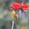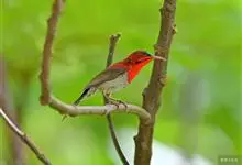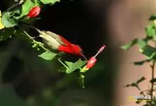 黄腰太阳鸟共有16个亚种,小型鸟类,体长10-15厘米。嘴细长而向下弯曲,雄鸟额和头顶前部金属绿色,头顶后部橄榄褐色。其余头、颈、背、肩、颏、喉、胸以及翅上中覆羽和小覆羽概为红色,腰黄色,…全部>>