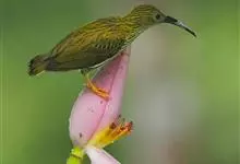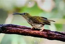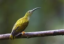 纹背捕蛛鸟:为太阳鸟科捕蛛鸟属的鸟类。是太阳鸟科中体型较大的一种,体重25-45克,体长160-210毫米。嘴粗长而尖且向下弯曲。上体橄榄黄色具黑色中央斑纹。下体淡黄白色满布黑色纵纹,尾具黑色次端斑。…全部>>