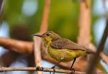 黄腹花蜜鸟是雀形目太阳鸟科花蜜鸟属鸟类。体型较小、喙略短而弯、腹部黄色。雄鸟繁殖季节颏及胸黑紫色并泛金属光泽,具有绯红色及灰色胸带,将上腹部黑色斑与前胸隔开,肩斑为橙黄色丝质羽,上体橄榄绿色,…全部>>