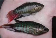 叉尾斗鱼,体形与圆尾斗鱼相似。腹鳍有1根分节鳍条特别延长,雄鱼鳍条延长尤甚,尾鳍叉形。 多生活于山塘、稻田及水泉等浅水地区,食无脊椎动物。繁殖期雄鱼吐泡沫为巢,将卵汇集于中,雄鱼有护巢的习性。个体小,…全部>>