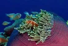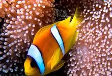 小丑鱼是鲈形目雀鲷科小丑鱼属鱼类的统称。体长仅5—6厘米。身体色彩艳丽,多为红色、橘红色;除透明的胸鳍与软背鳍鳍条外部,其余鳍均为黑色。体形怪异,体色多变,通常体侧有白色条纹。…全部>>