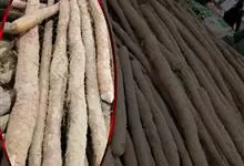 薯蓣是缠绕草质藤本。块茎为长圆柱形,垂直生长,长可达1米多,断面干时白色。茎通常带紫红色,右旋,无毛。单叶,在茎下部的互生,顶端渐尖,基部深心形、宽心形或近截形,边缘常3浅裂至3深裂。叶腋内常有珠芽。…全部>>