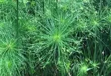 纸莎草是莎草科、莎草属的植物,具有粗壮的根状茎,高达2-3米,茎秆簇生,粗壮,直立,钝三棱形。叶退化呈鞘状,茎秆顶端着生总苞片,呈伞状簇生,总苞片叶状,披针形,顶生花序伞梗极多,细长下垂。瘦果灰褐色,…全部>>