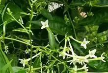 夜香树是茄科、夜香树属直立或近攀援状灌木。枝条细长而下垂。叶有短柄,叶片矩圆状卵形或矩圆状披针形,全缘,顶端渐尖,基部近圆形或宽楔形,两面秃净而发亮,有6-7对侧脉。伞房式聚伞花序,腋生或顶生,…全部>>