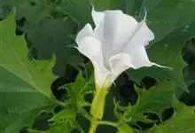 曼陀罗,茄科曼陀罗属一年生大型草本植物,全株光滑。有臭气;叶呈广卯形,边缘具不规则波状浅齿裂;花单生于枝杖间或叶腋,直立,有短梗;花萼是筒状裂片三角形,颜色为白色或淡紫色;果实为蒴果卵状,…全部>>