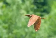 紫背苇鳽是鹭科、苇鳽属动物,为涉禽,体长约33厘米。头顶黑色,后头至尾上覆羽暗栗褐色;翅上覆羽橄榄黄色;下体浅棕黄色。多生活于水库和山脚边的稻田、芦苇丛、滩涂及沼泽草地,在西藏见于海拔2300米的农田,…全部>>