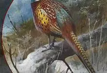 环颈雉是雉科、雉属的一种走禽,共有30个亚种。体重900-1050克,体长53-89厘米。体型较家鸡略小,但尾巴却长得多。雄鸟和雌鸟羽色不同,雄鸟羽色华丽,多具金属反光,…全部>>