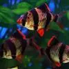 虎皮鱼又名四间鱼、品品鱼等。隶属鲤形目鲤科,热带淡水鱼类。其体高,侧扁略呈卵圆形。体呈浅黄色,背部为金黄色,背鳍、腹鳍、尾鳍和吻部均为鲜红。鱼体上有四条黑色粗带状竖纹,第一条竖纹通过眼部,…全部>>