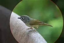 黄喉雀鹛是雀眉科、拟希鹛属小型鸟类,体长11-12厘米。头顶浅黄色具黑色鳞状斑,头顶两侧各有一道黑色侧冠纹,眉纹浅黄色、长而宽阔。上体灰绿色,两翅和尾褐色而具浅黄色窄缘。下体淡黄色。特征明显,…全部>>