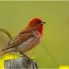 普通朱雀是雀形目雀科朱雀属鸟类,又名红朱雀、马料、青麻料。雄鸟上体红色,下体淡红色;头部、喉部、胸部及腰部亮红色;背部褐色染红色;两翼及尾黑褐色,羽缘染红色。雌鸟上体橄榄褐色,下体近白色,…全部>>