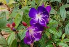 野牡丹:灌木,高0.5-1.5米,分枝多;茎钝四棱形或近圆柱形,毛扁平边缘流苏状。叶片坚纸质,卵形或广卵形,全缘,7基出脉,两面被糙伏毛及短柔毛。伞房花序生于分枝顶端,近头状,…全部>>
