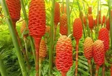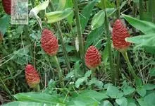 红球姜 Roscoe ex Sm.)是姜科姜属的多年生草木植物。植株高达2米,根茎块状,内部淡黄色,叶披针形或长圆状披针形,无毛或下面被疏长柔毛,无柄或具短柄,苞片覆瓦状排列,初淡绿色,后红色。…全部>>