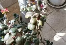 仙女之舞是景天科、伽蓝菜属植物。常绿肉质灌木,株高可达2-3米。幼株茎上有毛。叶有柄;单叶对生,阔卵状三角形,肉质;新叶开展,老叶正面凹、背面圆凸,缘具稀锯齿,橄榄绿色至灰绿色,被稠密的灰白色毛。…全部>>