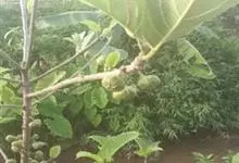 大果榕是桑科榕属的小乔木,株高可达10米;幼枝被柔毛;叶互生,宽卵状心形或近圆形;雄花无梗、匙形、花丝长,雌花生于雌株榕果内,子房白色;榕果簇生于树干基部或老茎短枝上、扁球形或陀螺形,…全部>>