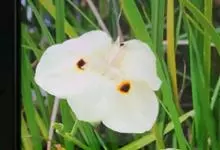 双色野鸢尾为多年生草本植物,叶子呈剑状淡绿色。…
