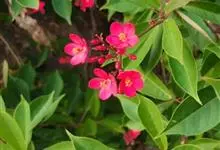变叶珊瑚花,是大戟科麻风树属常绿灌木。变叶珊瑚花单叶互生,倒阔披针形,叶面为浓绿色,叶背为紫绿色,叶柄具茸毛,叶面平滑,常丛生于枝条顶端;花单性,雌雄同株,花冠红色或粉红色,雌、雄花不同时开放;具乳汁,…全部>>