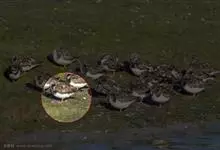 翻石鹬:体重82-135克,体长180-240毫米。体型高矮兼称,看起来十分的滑稽。它们在繁殖季时体色非常醒目,由栗色、白色和黑色交杂而成,嘴短,黑色,脚橙红色。到了冬天,翻石鹬身上的栗红色就会消失,…全部>>